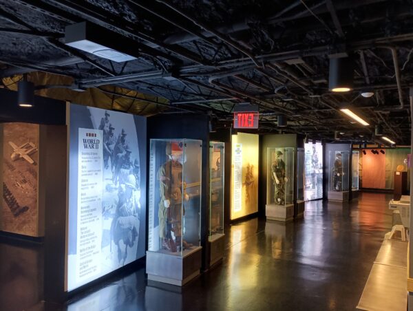 WWII Gallery, 1942 – 1945. Learn the Division’s story of becoming the first U.S. Army Airborne Division. Follow the Division’s path thru North Africa, Italy, Ireland, England, France, Holland, Belgium, and Germany. Walk & scan the in-gallery QR code to search WWII Digital Archives on your personal device. Read WWII Era All-American Soldier stories, see photos of their service, video of the Division’s combat jumps, stopping the Nazi advance in the Bulge, occupation duty in Germany, and tag line as America’s Guard of Honor.